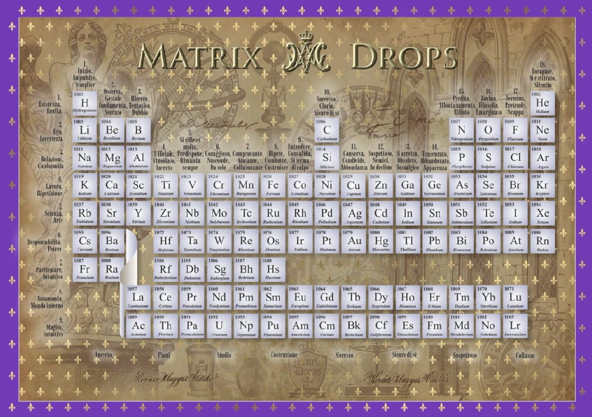 “In ognuna delle nostre vite, la felicità può manifestarsi solo se l’individuo è in grado di liberare il potere divino dentro di sé più e più volte. Molti di noi conoscono la sensazione di ‘e ora come procedere…’, il dubbio che è quasi sempre causato da una mancanza di intuizione. Avere uno scopo chiaro è una benedizione, e le molte informazioni divine che possiamo accedere attraverso i Matrix Drops ci aiuteranno a trasformare il sogno in realtà. Tutto ciò, attraverso l’esperienza della libertà, eleva l’individuo alla sfida che è rilevante per il suo livello mentale e le sue capacità attuali. Aspirazioni elevate e significative possono essere raggiunte solo attraverso un’elevazione continua. Il Matrix Drops Computer è uno specchio che ci mostra in ogni situazione come evitare fallimenti e come aprire una nuova, edificante opportunità nella nostra vita.” – András Kovács-Magyar