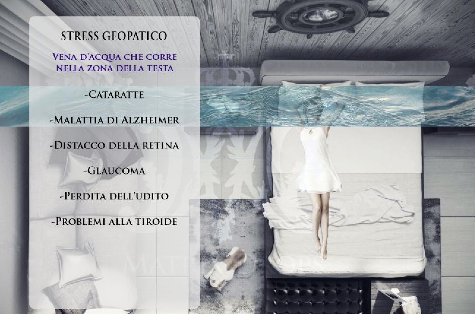 Il suo sistema include l’elenco delle malattie che ha osservato svilupparsi al di sopra di specifiche zone di radiazione geopatica. Quando il Matrix Drops Computer misura le impronte delle radiazioni geopatiche nelle aure – le zone Hartmann, le vene d’acqua sotterranee – si raccomanda di mappare le zone di radiazione geopatica nelle nostre case e nei luoghi di lavoro.