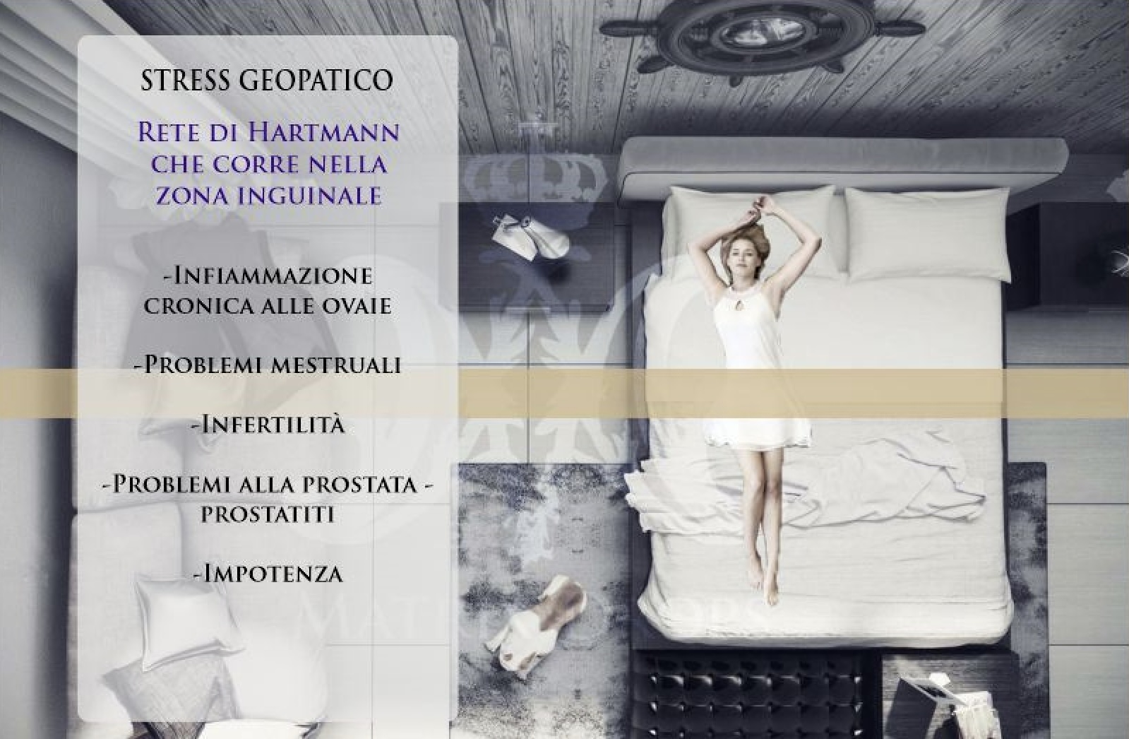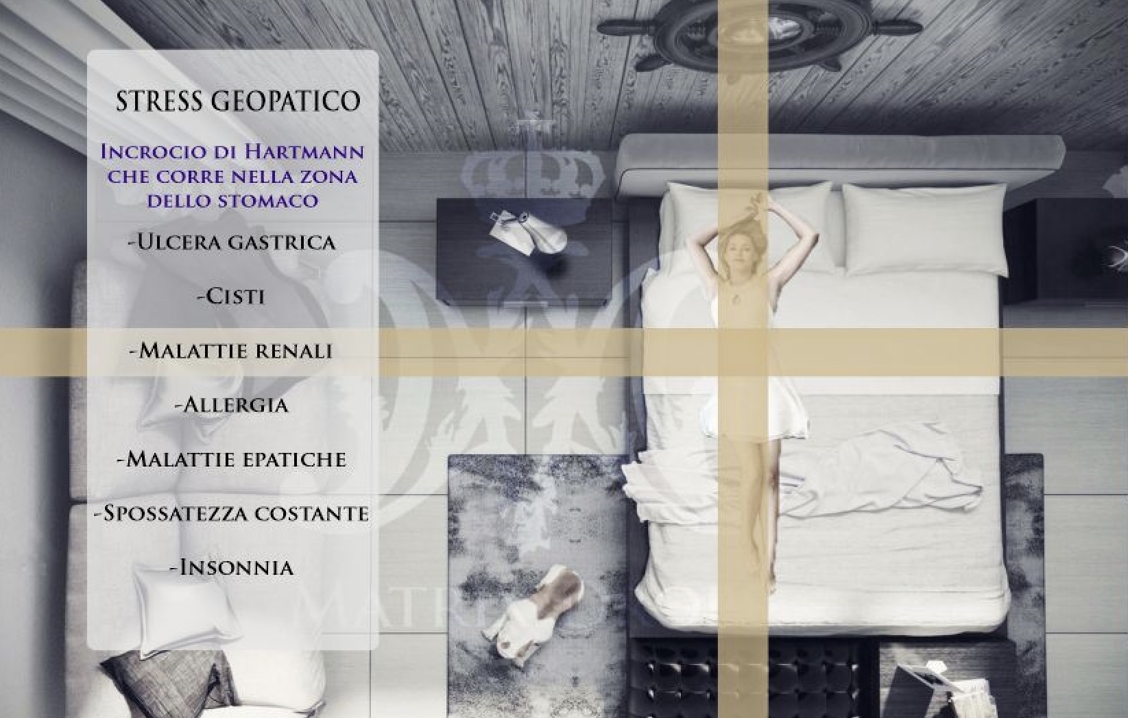 Tutte le zone di stress – zone di Hartmann e vene d’acqua – e le loro intersezioni causano stress geopatico negli organismi viventi. Le zone di Hartmann e le vene d’acqua che passano sotto di noi influenzano negativamente l’aura che circonda il nostro corpo. I danni all’aura dovuti alle zone di disturbo possono causare malattie nel nostro corpo. Diversi organi si indeboliscono, possono comparire infiammazioni e altri problemi cronici quando ci troviamo al di sopra di una zona Hartmann o di una vena d’acqua sotterranea.